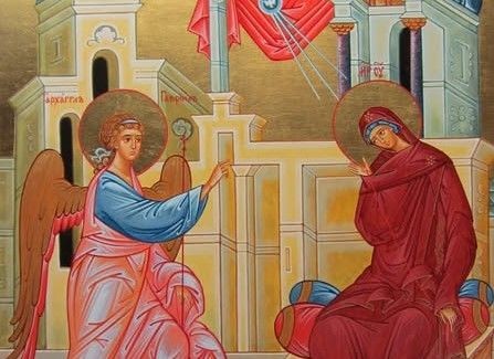 Архангел Гавриил бил изпратен от Бога в малкият град Назарет, за да възвести на Дева Мария, че й предстои да зачене от Духа Светаго и да роди Младенец: „ще родиш Син и ще Го наречеш с името Иисус. Той ще бъде велик и ще се нарече Син на Всевишния; и ще Му даде Господ Бог престола на отца Му Давида; и ще царува над дома Иаковов довеки, и царството Му не ще има край.“. Мария отговорила на ангела: „Ето рабинята Господня; нека ми бъде по думата ти.“. (Л.1:26–38).